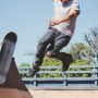 白いタオルを首に巻いてジョギングをしている女性、